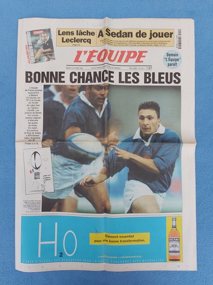 Accueil / P / Publicités / Publicités journaux / L'Equipe / 1999 1999 Catégories : L'Equipe, P, Publicités, Publicités journaux Description Description Une du journal l’Equipe du samedi 2 octobre 1999. Produits similaires Bars, cafés, restos, magasins , P 11 P , Pin's 03 P , Pin's 05 P , Porte-menus 02
