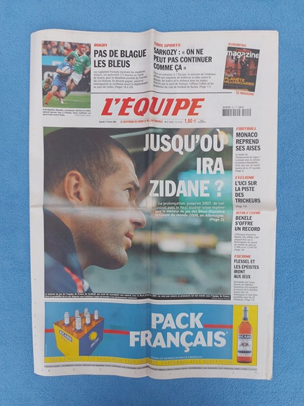 Accueil / P / Publicités / Publicités journaux / L'Equipe / 2004 2004 Catégories : L'Equipe, P, Publicités, Publicités journaux Description Description Une du journal l’Equipe du samedi 21 février 2004. Produits similaires P , Pin's 03 P , Pin's 08 P , Portes-clés 03 P , Pin's 04