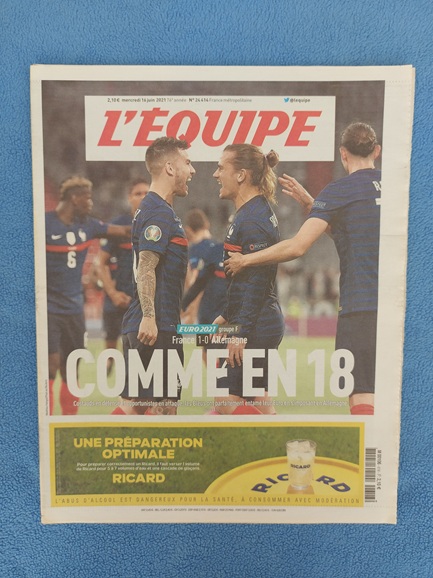 Accueil / P / Publicités / Publicités journaux / L'Equipe / 2021 2021 Catégories : L'Equipe, P, Publicités, Publicités journaux Description Description Une du journal l’Equipe du mercredi 16 juin 2021. Produits similaires P , Pichets 0,25l P , Pin's 09 P , Pin's 03 P , Portes-clés 06